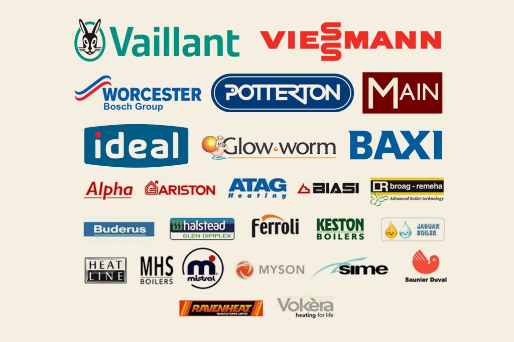Worcester Bosch, Vaillant, Baxi, Ideal Heating, Glow-worm, Viessmann, Potterton, Alpha, Ariston, Ferroli, Vokera.